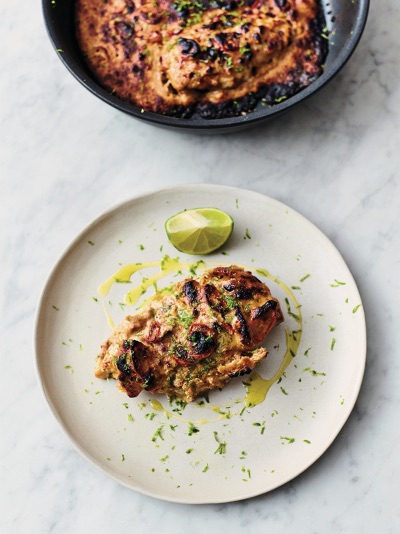 Svinespyd med kikerter, bladbete og paprika