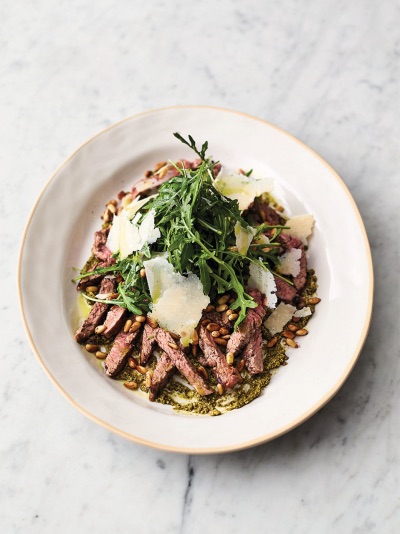 Pesto biff salat med pinjekjerner og parmesan