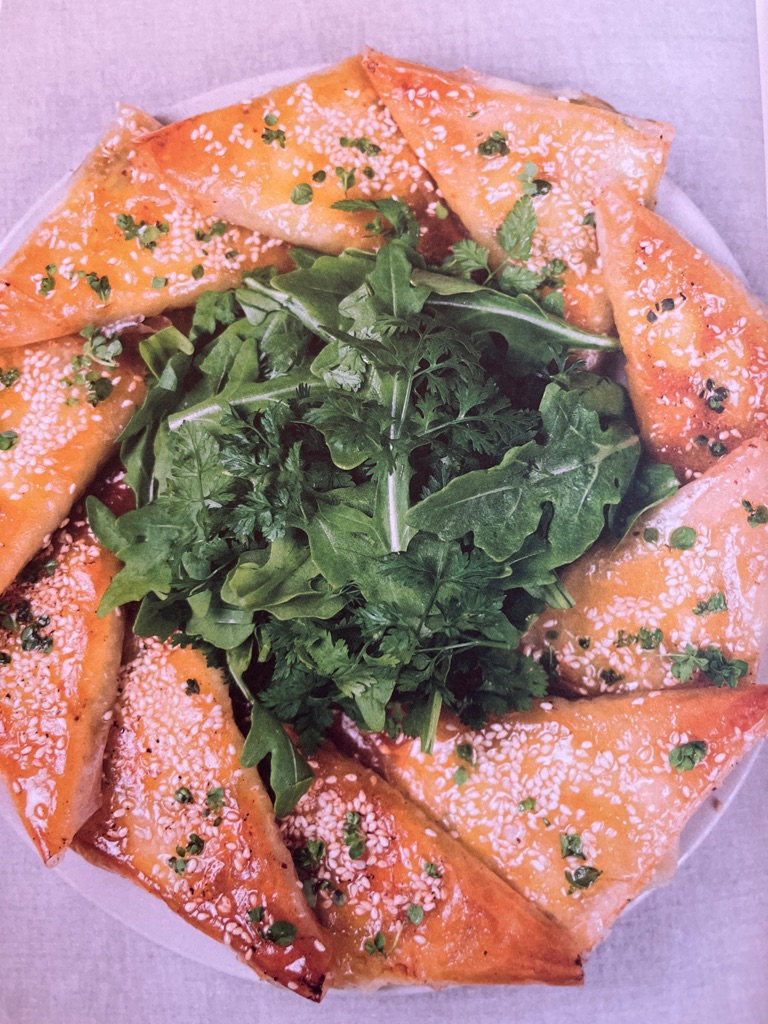 Bokhvetepannekaker, grønnsaker og burrata