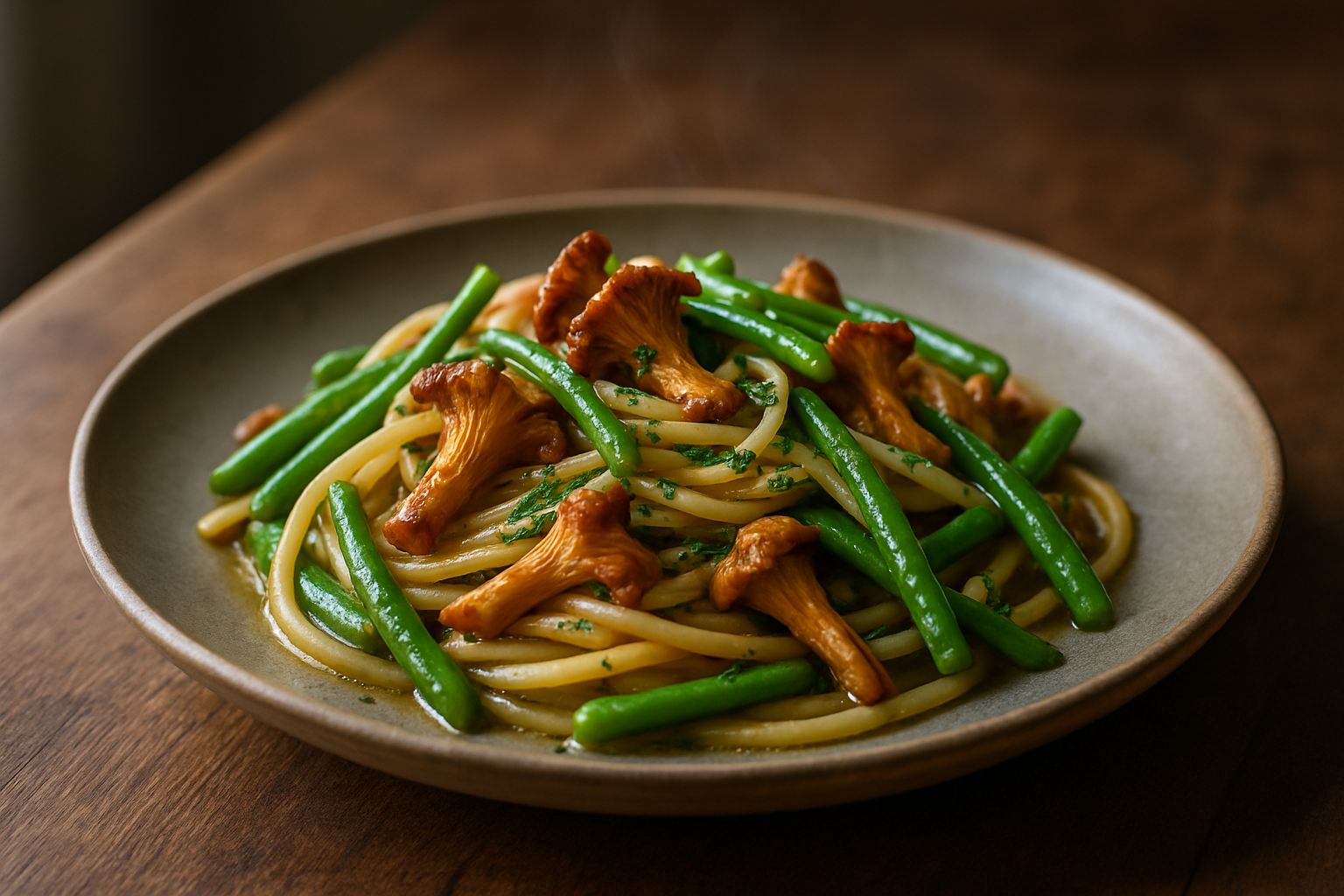 Bønner-kantarell-pasta